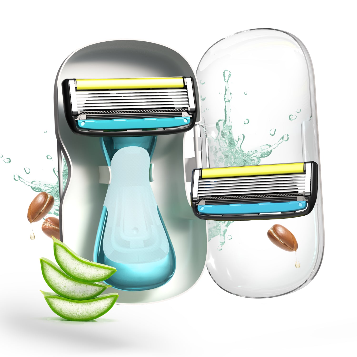 Pro Compact Head Shaving Razor for Men (1 Handle + 2 Blades) | 6-Blade Sensitive Razor with Pivot Head & Open Flow Architecture