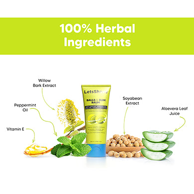 LetsShave Balls & Bum Balm (Pack of 3) | 5-in-1 Anti-Chafing & Deodorizing Cream with Aloe & Willow Bark