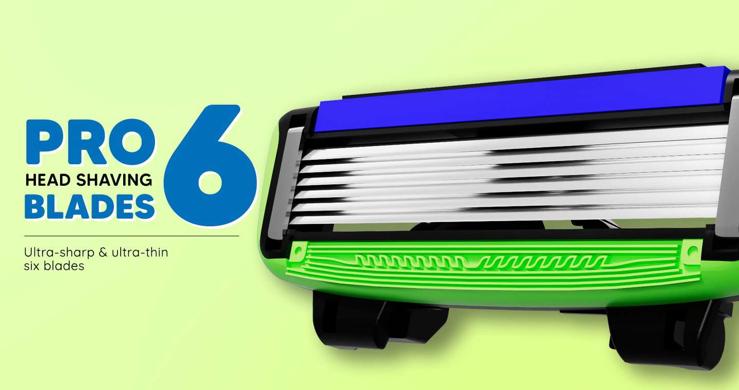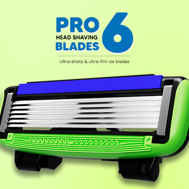 Pro Head Razor Blades (Pack of 4) | 6 Blade Diamond Coated Cartridges with Aloe & Argan Oil